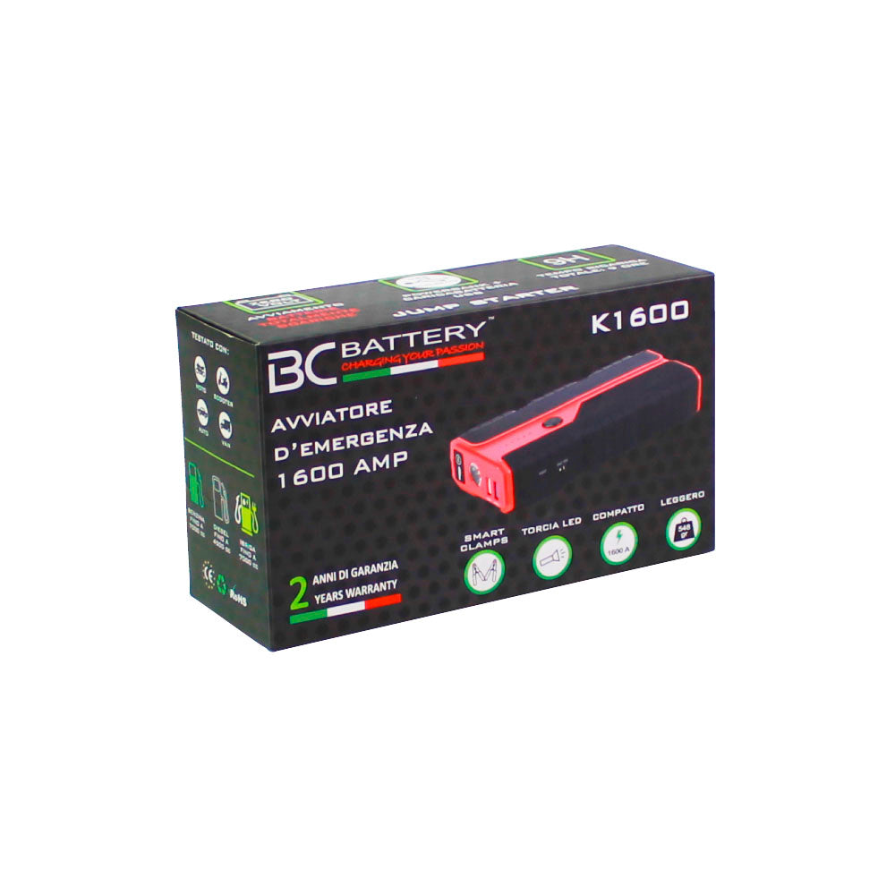 Avec le BC K1600, le risque d'être bloqué avec votre véhicule n'est plus qu'un lointain souvenir. Ce booster peut démarrer tous les véhicules jusqu'à 7000cc pour l'essence et les hybrides ou jusqu'à 4500cc pour les diesels.