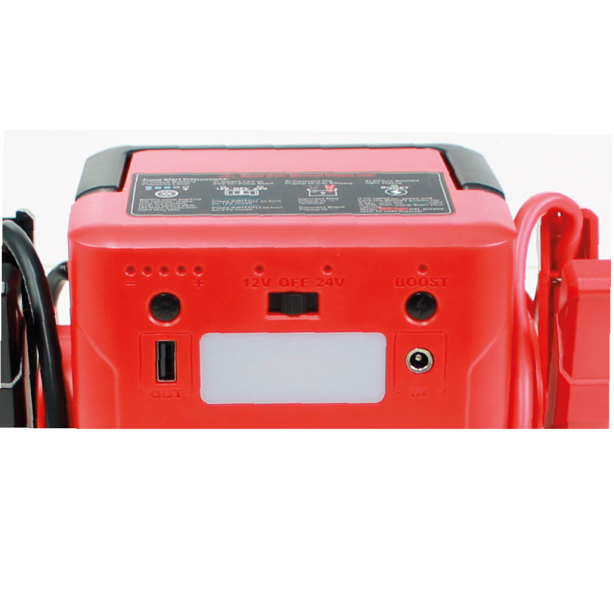 Son utilisation est très simple : il suffit d'allumer le produit, de sélectionner 12V ou 24V à l'aide du bouton central, de fixer les pinces sur les pôles de la batterie (pince rouge sur le pôle positif, pince noire sur le pôle négatif) puis d'appuyer sur le bouton de démarrage "Boost".